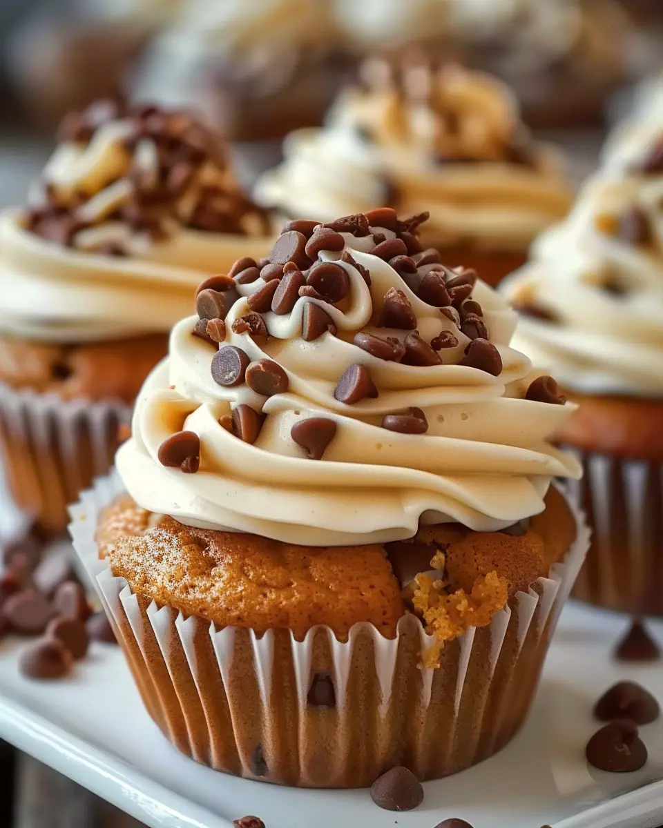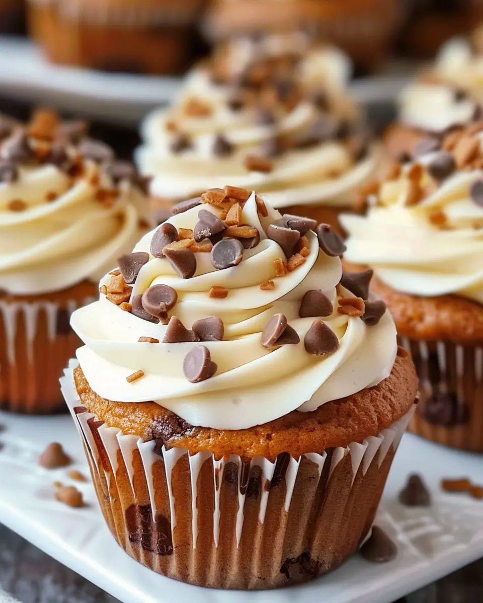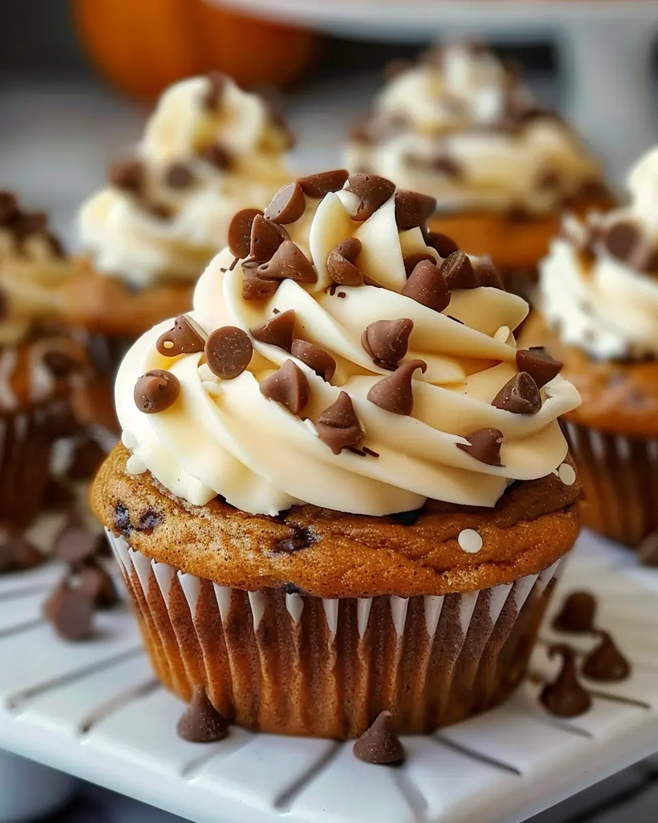 Indulge in the flavors of fall with these delightful pumpkin chip cupcakes, perfect for any occasion.