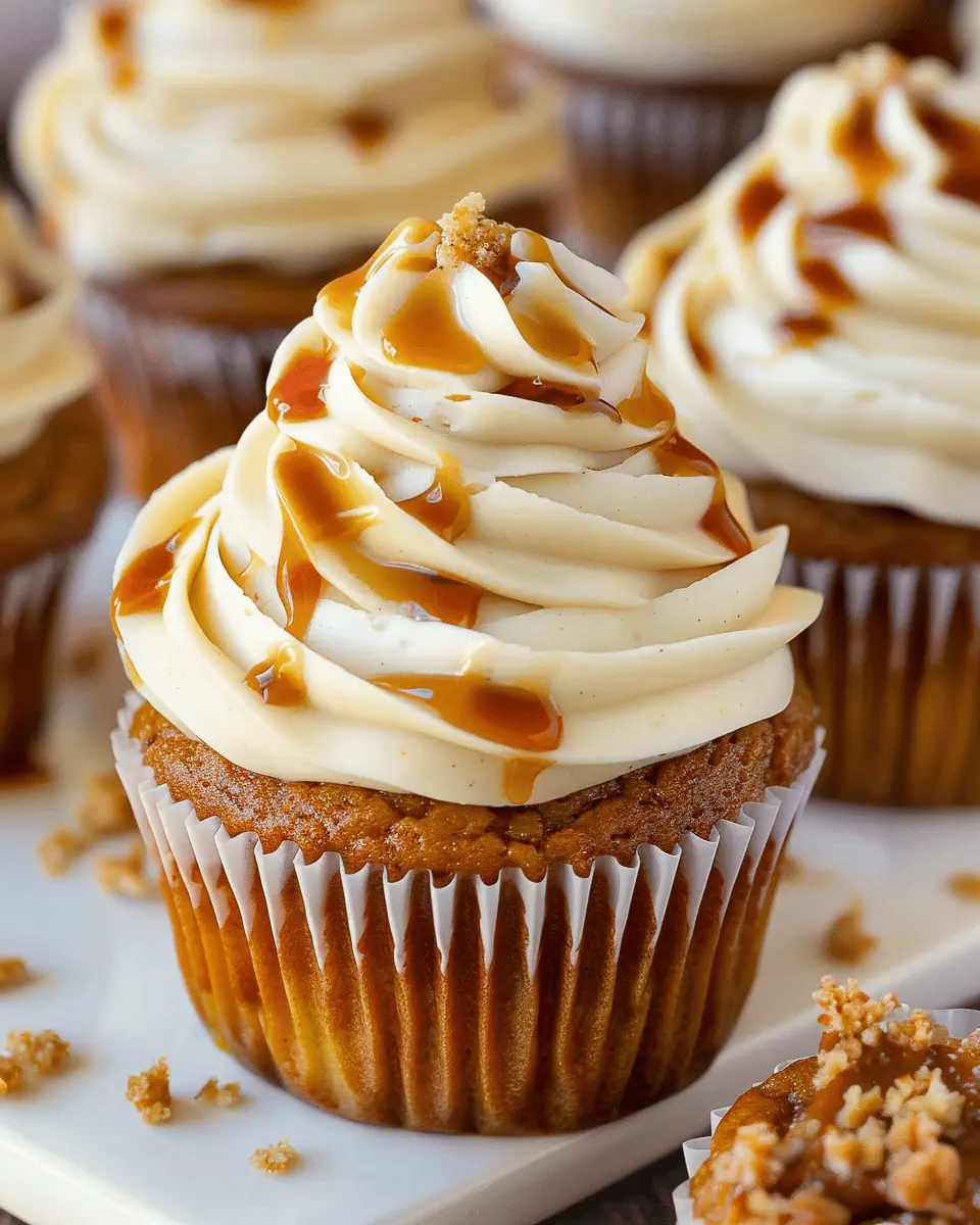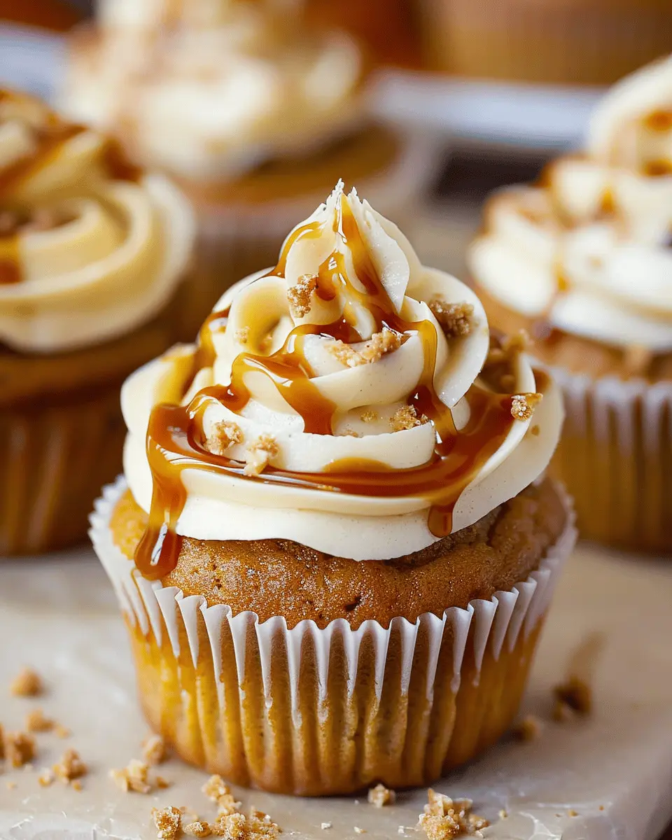 PrintPumpkin Cupcakes with Salted Caramel Cream Cheese Frosting Indulgence