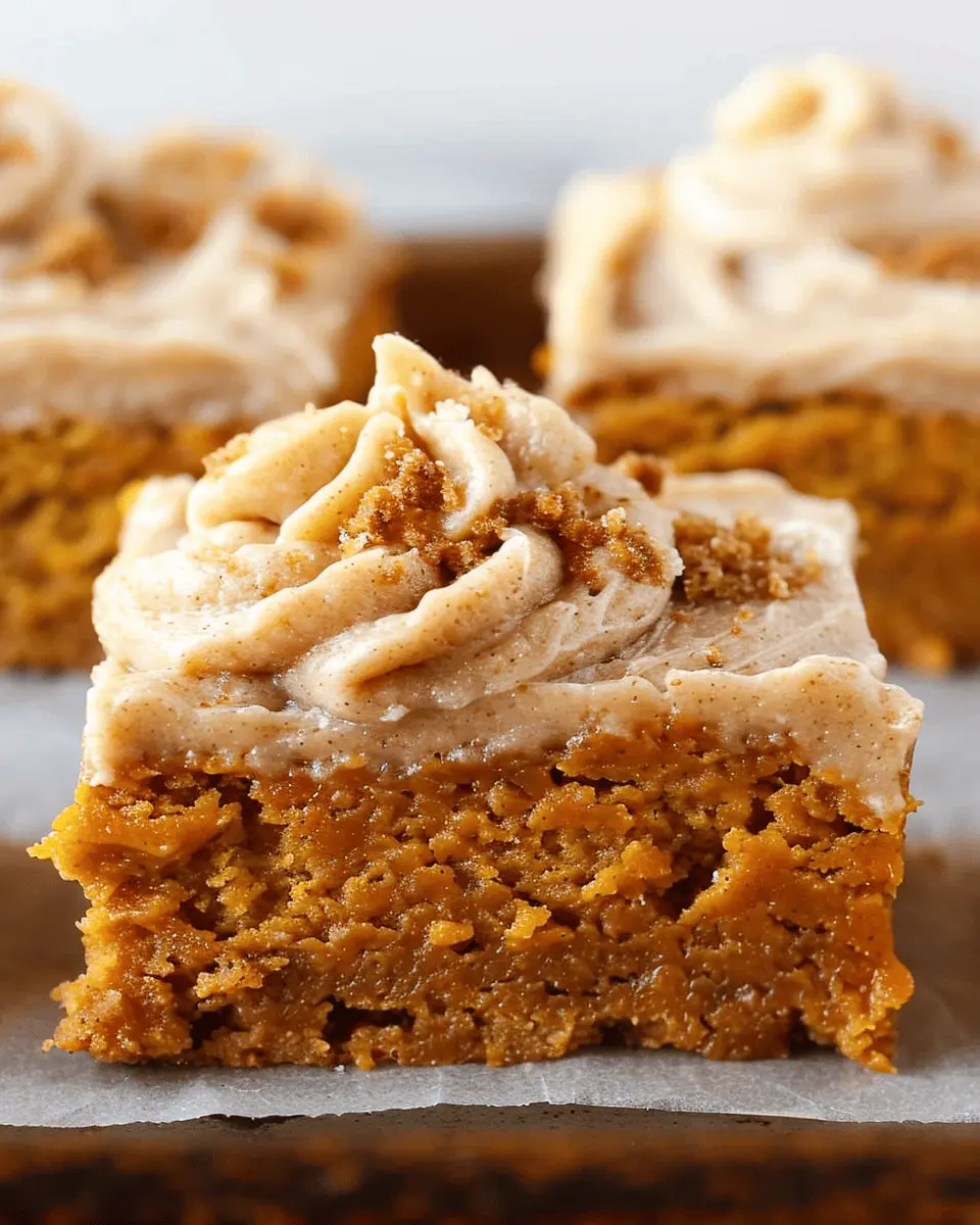 Delight in quick recipe ideas with these irresistible pumpkin bars topped with brown sugar frosting.