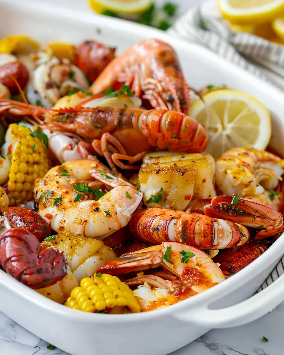 Incorporating fresh and seasonal produce alongside your seafood adds color and nutrition, making it a great centerpiece for your holiday table. Picture vibrant corn, flavorful potatoes, and zesty lemons complementing your seafood medley.
