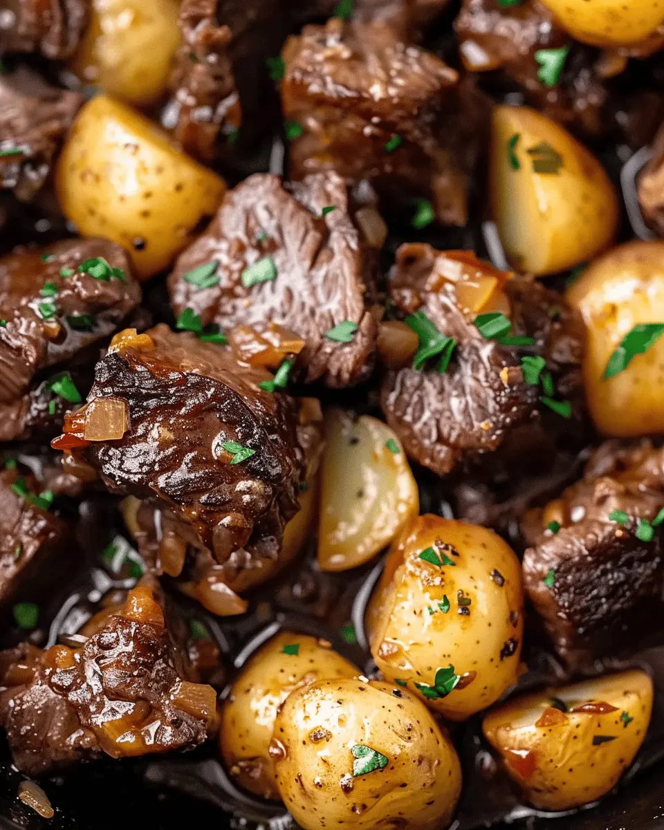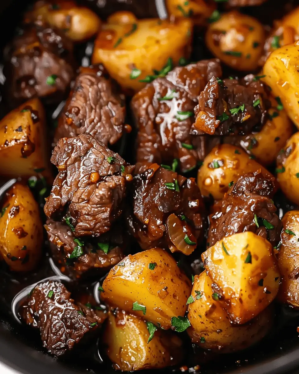 One of the most appealing aspects of this dish is the incredible blend of flavors. The garlic butter sauce infuses the beef with richness while keeping it tender and juicy—a harmonious union you simply can’t resist. Plus, when you add in some perfectly cooked potatoes, that combination takes it to another level! Each bite offers a wonderful chewiness balanced by the creamy texture of the garlic sauce, making it a delightful experience for your taste buds.