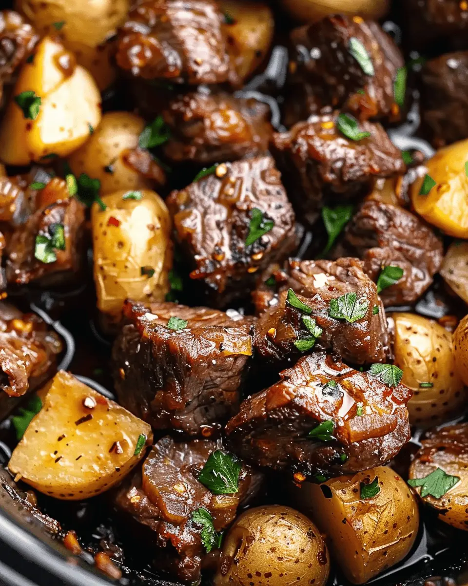 Slow Cooker Garlic Butter Beef Bites with Potatoes