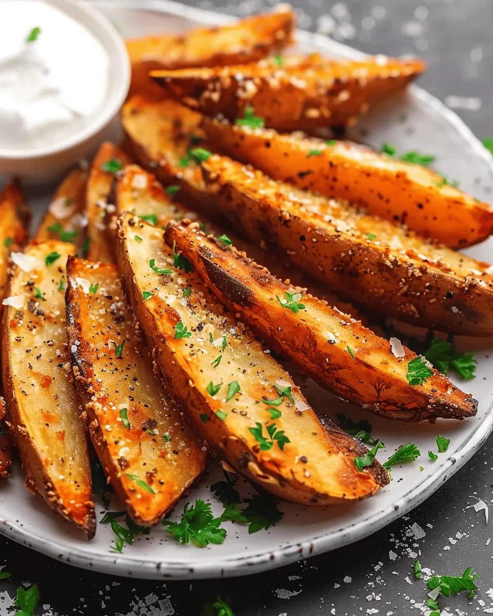 Your beautifully arranged Baked Garlic Parmesan Potato Wedges are ready to impress your friends and family! Consider sharing your creations on social media to inspire others.
