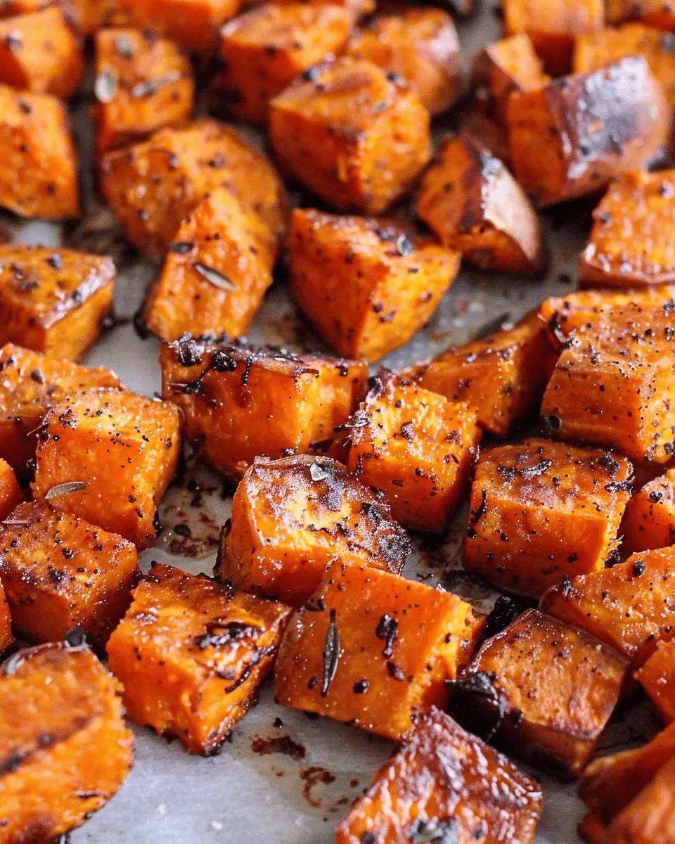 - Herbs: Fresh rosemary or thyme adds an aromatic punch that beautifully compliments the sweet potatoes.