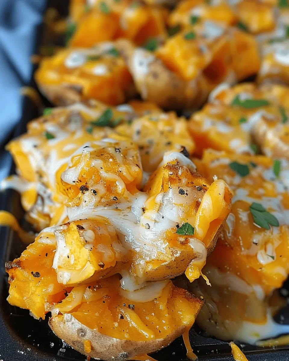 - Cheesy Goodness: With your Cheesy Ranch Potatoes, consider blending ranch seasoning with cheese for a creamy covering that complements the sweet potatoes’ natural sweetness.
