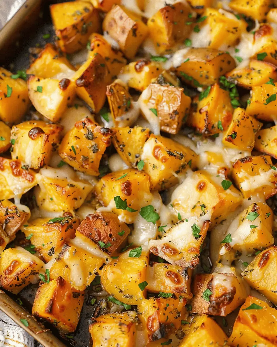 • Watch for goldenness: The cubes should be crispy on the outside and tender inside. When there’s about 5 minutes left, sprinkle the shredded cheese on top to melt it beautifully.