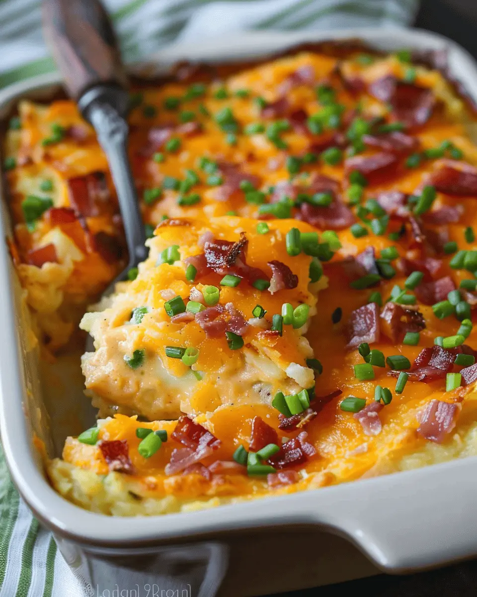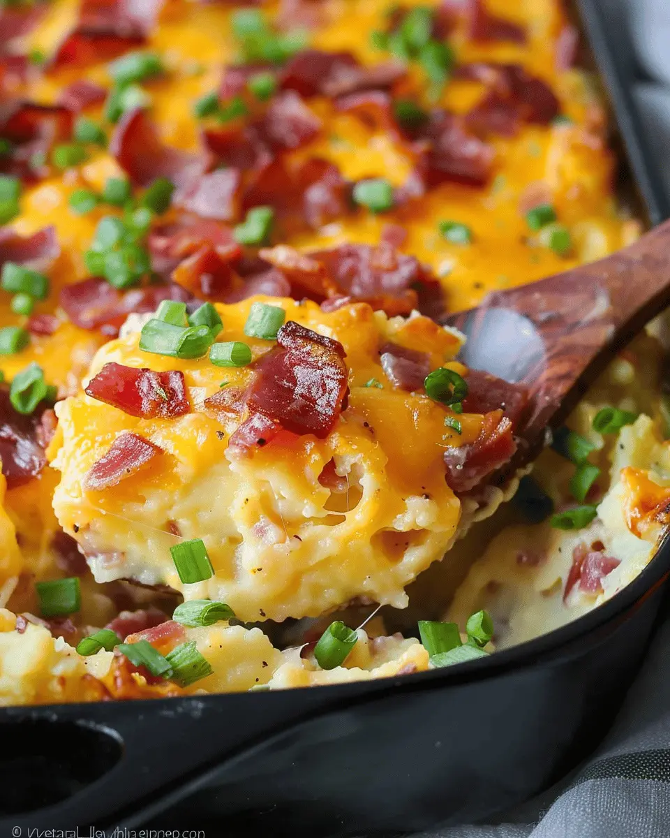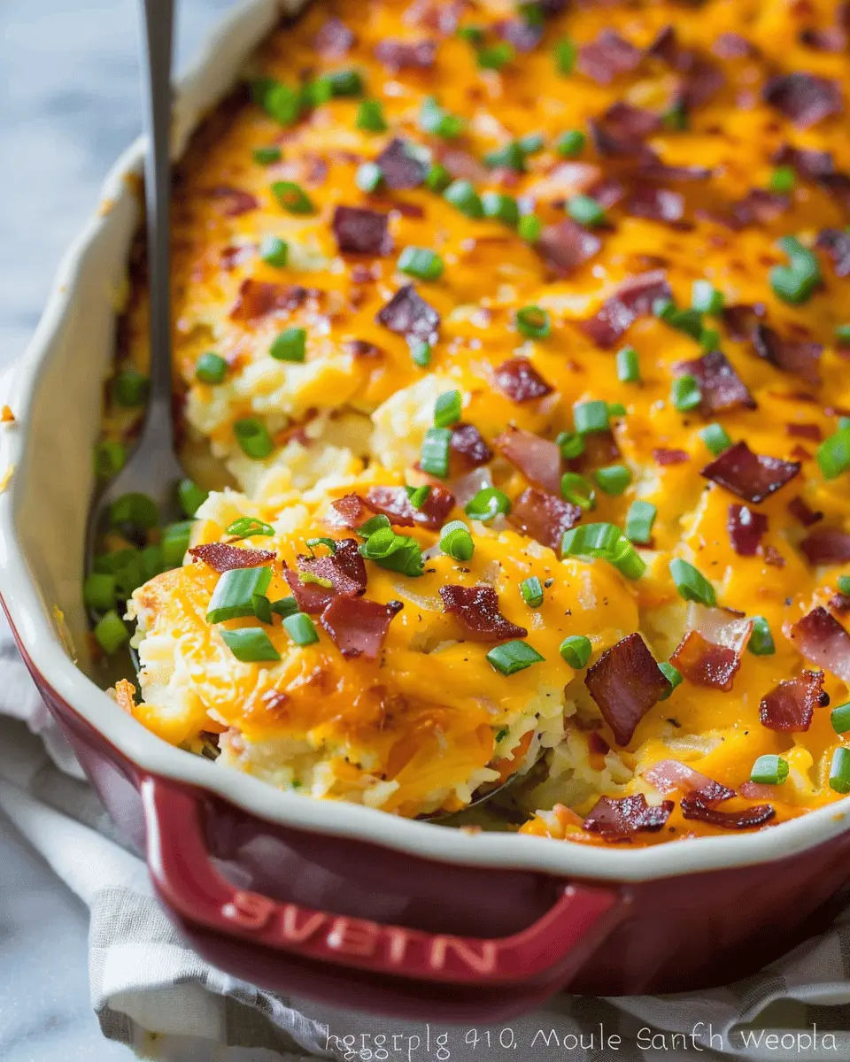 Delight in the rich flavors of our Loaded Twice Baked Potato Casserole made with sweet potatoes.