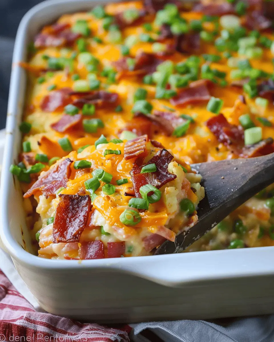 Presentation can elevate any meal, and your loaded casserole is no exception. Serve it in individual ramekins for a charming touch, perfect for gatherings or a cozy dinner at home. Garnish with fresh herbs like chives or parsley to add a pop of color and freshness.